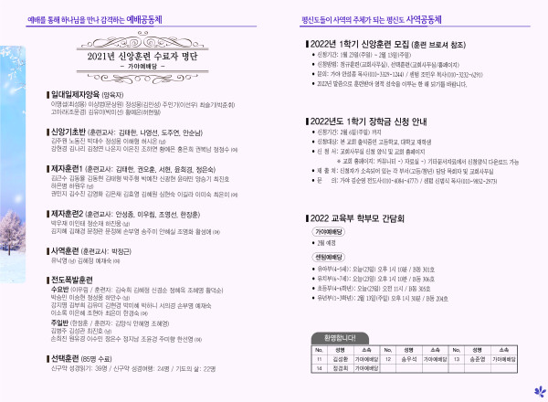 2022년 1월 23일 주보 (가야예배당) 페이지 정보 작성자 관리지기 작성일22-01-22 11:46 조회5,646회 댓글0건 관련링크 목록 본문 * 2022년 1월 23일 주보 (가야예배당) 댓글목록 등록된 댓글이 없습니다. 목록