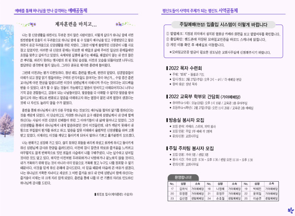 2022년 2월 20일 주보 페이지 정보 작성자 관리지기 작성일22-02-19 11:30 조회5,583회 댓글0건 관련링크 목록 본문 * 2022년 2월 20일 주보 댓글목록 등록된 댓글이 없습니다. 목록
