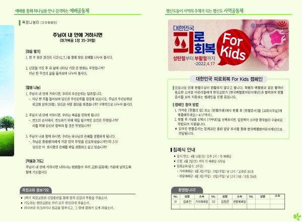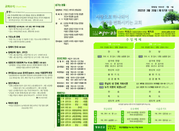 2022년 3월 20일 주보 (가야예배당) 페이지 정보 작성자 관리지기 작성일22-03-19 11:53 조회5,640회 댓글0건 관련링크 목록 본문 *2022년 3월 20일 주보 (가야예배당) 댓글목록 등록된 댓글이 없습니다. 목록