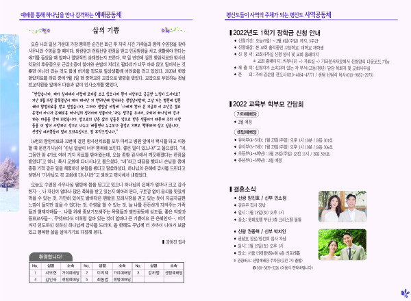 2022년 1월 9일 주보 페이지 정보 작성자 관리지기 작성일22-01-08 10:07 조회5,869회 댓글0건 관련링크 목록 본문 * 2022년 1월 9일 주보 댓글목록 등록된 댓글이 없습니다. 목록