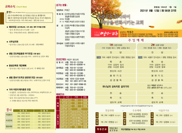 2021년 9월 12일 주보 페이지 정보 작성자 관리지기 작성일21-09-11 11:01 조회6,274회 댓글0건 관련링크 목록 본문 * 2021년 9월 12일 주보 댓글목록 등록된 댓글이 없습니다. 목록