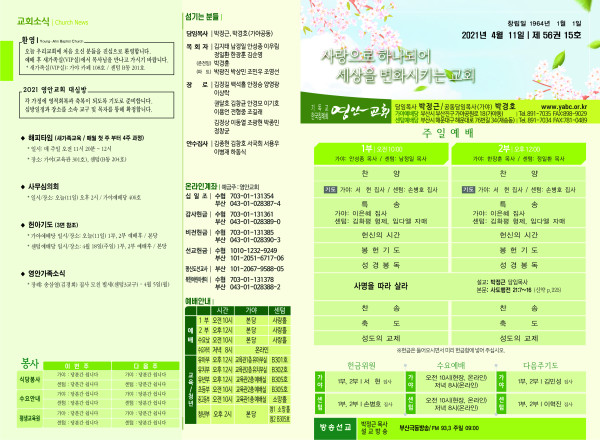 2021년 4월 11일 주보 페이지 정보 작성자 관리지기 작성일21-04-10 12:00 조회6,951회 댓글0건 관련링크 목록 본문 2021년 4월 11일 주보 댓글목록 등록된 댓글이 없습니다. 목록