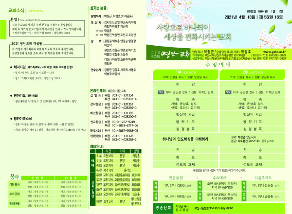 2021년 4월 18일 주보 페이지 정보 작성자 관리지기 작성일21-04-17 11:07 조회6,955회 댓글0건 관련링크 목록 본문 *2021년 4월 18일 주보 댓글목록 등록된 댓글이 없습니다. 목록