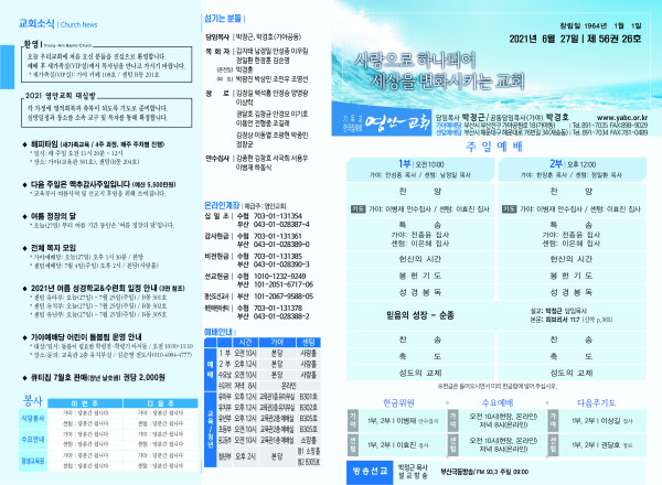 2021년 6월 27일 주보 페이지 정보 작성자 관리지기 작성일21-06-26 11:20 조회7,082회 댓글0건 관련링크 목록 본문 *2021년 6월 27일 주보 댓글목록 등록된 댓글이 없습니다. 목록
