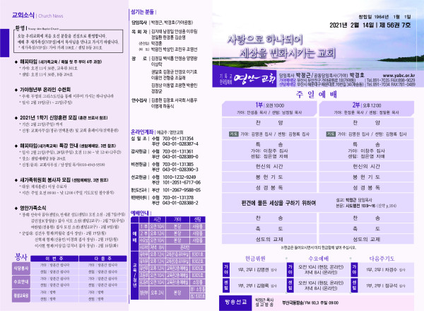 2021년 2월 14일 주보 페이지 정보 작성자 관리지기 작성일21-02-12 22:46 조회7,257회 댓글0건 관련링크 목록 본문 2021년 2월 14일 주보 댓글목록 등록된 댓글이 없습니다. 목록