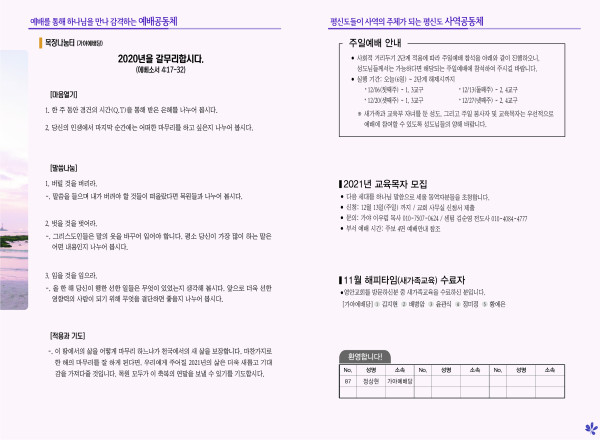 2020년 12월 6일 주보(가야예배당) 페이지 정보 작성자 관리지기 작성일20-12-05 11:28 조회7,270회 댓글0건 관련링크 목록 본문 2020년 12월 6일 주보(가야예배당) 댓글목록 등록된 댓글이 없습니다. 목록