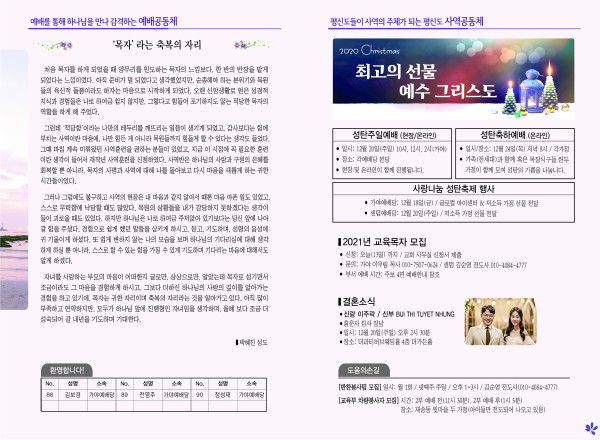 2020년 12월 13일 주보(센텀예배당) 페이지 정보 작성자 관리지기 작성일20-12-12 11:09 조회7,133회 댓글0건 관련링크 목록 본문 2020년 12월 13일 주보(센텀예배당) 댓글목록 등록된 댓글이 없습니다. 목록