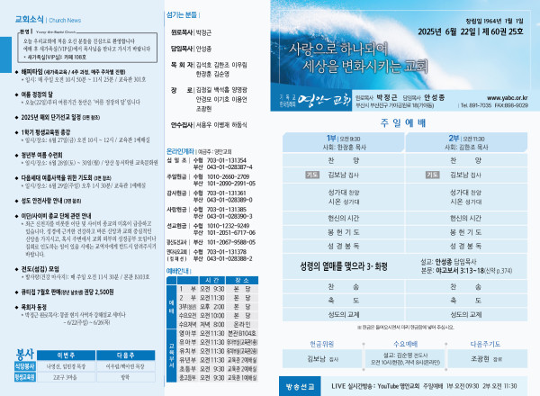 2025년 6월 22일 주보 페이지 정보 작성자 관리지기 작성일25-06-21 10:18 조회2,026회 댓글0건 관련링크 목록 본문 2025년 6월 22일 주보 댓글목록 등록된 댓글이 없습니다. 목록