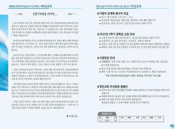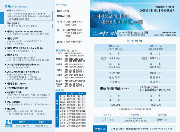 2025년 7월 13일 주보 페이지 정보 작성자 관리지기 작성일25-07-12 11:13 조회1,926회 댓글0건 관련링크 목록 본문 2025년 7월 13일 주보 댓글목록 등록된 댓글이 없습니다. 목록