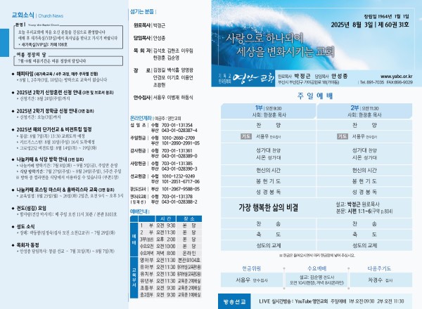 2025년 8월 3일 주보 페이지 정보 작성자 관리지기 작성일25-08-02 10:04 조회1,869회 댓글0건 관련링크 목록 본문 2025년 8월 3일 주보 댓글목록 등록된 댓글이 없습니다. 목록