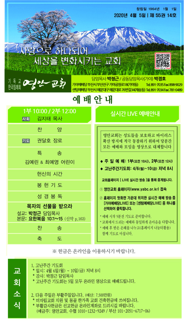 2020년 4월 5일 주보 페이지 정보 작성자 관리지기 작성일20-04-04 14:17 조회8,940회 댓글0건 관련링크 목록 본문 2020년 4월 5일 주보 댓글목록 등록된 댓글이 없습니다. 목록