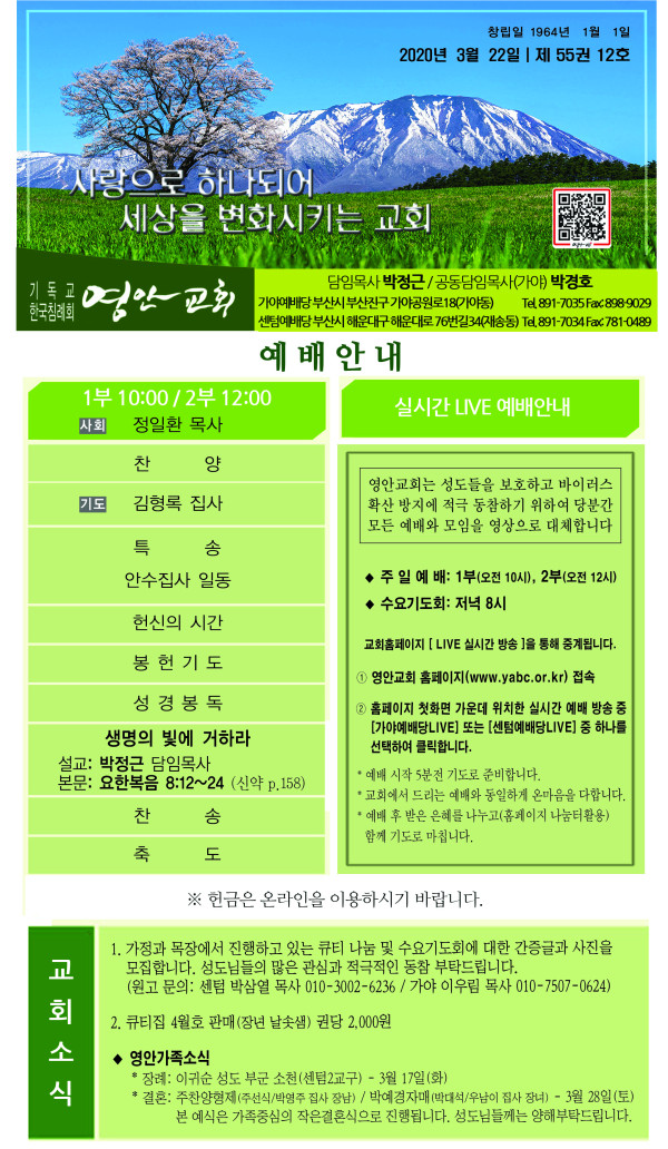 2020년 3월 22일 주보 페이지 정보 작성자 관리지기 작성일20-03-21 12:04 조회8,606회 댓글0건 관련링크 목록 본문 2020년 3월 22일 주보 댓글목록 등록된 댓글이 없습니다. 목록