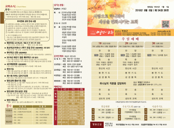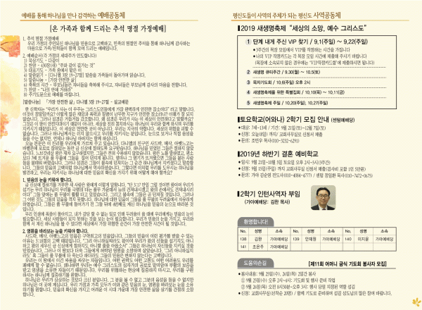 2019년 9월 8일 주보 페이지 정보 작성자 관리지기 작성일19-09-07 12:00 조회8,803회 댓글0건 관련링크 목록 본문 [2019년 9월 8일 주보] 댓글목록 등록된 댓글이 없습니다. 목록