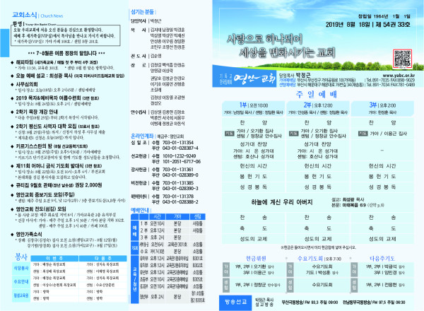 2019년 8월 18일 주보 페이지 정보 작성자 관리지기 작성일19-08-17 16:43 조회9,269회 댓글0건 관련링크 목록 본문 2019년 8월 18일 주보 댓글목록 등록된 댓글이 없습니다. 목록