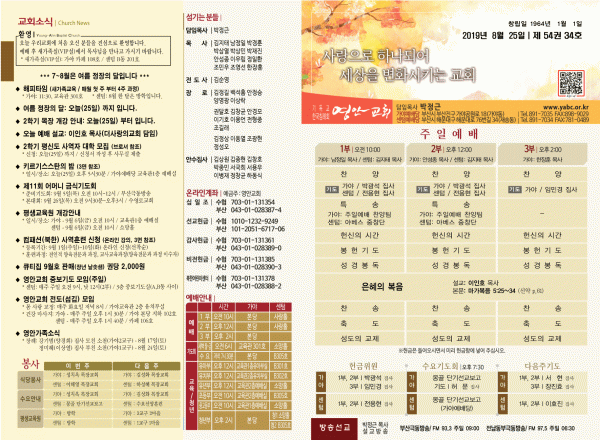 2019년 8월 25일 주보 페이지 정보 작성자 관리지기 작성일19-08-24 11:47 조회9,076회 댓글0건 관련링크 목록 본문 [2019년 8월 25일 주보] 댓글목록 등록된 댓글이 없습니다. 목록