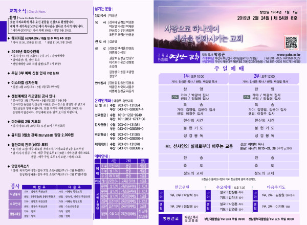 2019년 2월 24일 주보 페이지 정보 작성자 관리지기 작성일19-02-23 13:13 조회9,966회 댓글0건 관련링크 목록 본문 2019년 2월 24일 주보 댓글목록 등록된 댓글이 없습니다. 목록