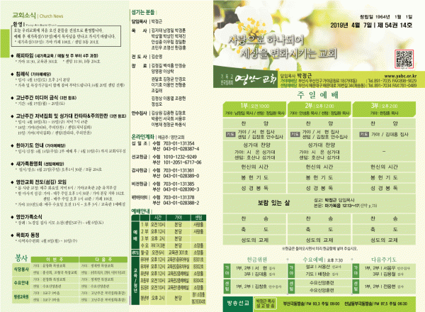 2019년 4월 7일 주보 페이지 정보 작성자 관리지기 작성일19-04-06 11:34 조회9,670회 댓글0건 관련링크 목록 본문 [2019년 4월 7일 주보] 댓글목록 등록된 댓글이 없습니다. 목록