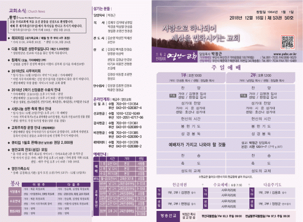 2018년 12월 16일 주보 페이지 정보 작성자 관리지기 작성일18-12-15 12:03 조회10,360회 댓글0건 관련링크 목록 본문 [2018년 12월 16일 주보] 댓글목록 등록된 댓글이 없습니다. 목록