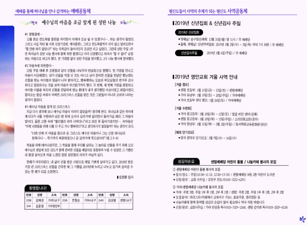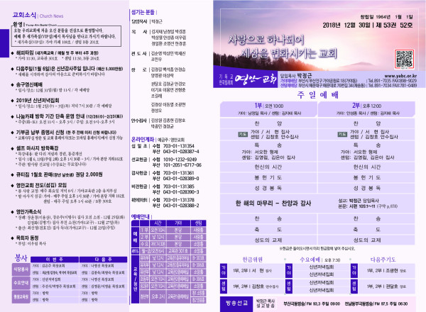 2018년 12월 30일 주보 페이지 정보 작성자 관리지기 작성일18-12-29 11:45 조회10,582회 댓글0건 관련링크 목록 본문 2018년 12월 30일 주보 댓글목록 등록된 댓글이 없습니다. 목록