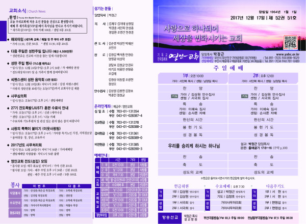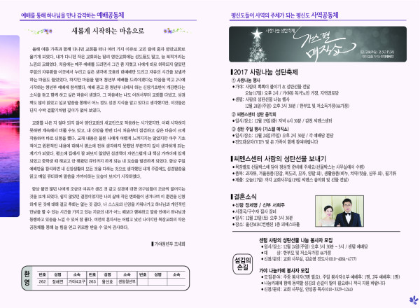 2017년 12월 17일 주보 페이지 정보 작성자 관리지기 작성일17-12-16 11:41 조회13,528회 댓글0건 관련링크 목록 본문 2017년 12월 17일 주보 댓글목록 등록된 댓글이 없습니다. 목록
