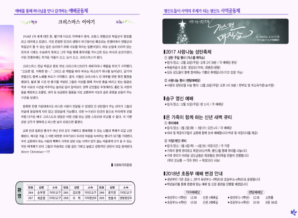 2017년 12월 24일 주보 페이지 정보 작성자 관리지기 작성일17-12-23 12:16 조회15,894회 댓글0건 관련링크 목록 본문 2017년 12월 24일 주보 댓글목록 등록된 댓글이 없습니다. 목록