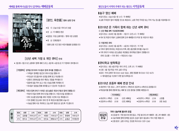 2017년 12월 31일 주보 페이지 정보 작성자 관리지기 작성일17-12-30 12:14 조회15,514회 댓글0건 관련링크 목록 본문 2017년 12월 31일 주보 댓글목록 등록된 댓글이 없습니다. 목록