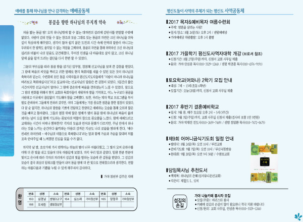 2017년 8월 20일 주보 페이지 정보 작성자 관리지기 작성일17-08-19 12:12 조회13,539회 댓글0건 관련링크 목록 본문 2017년 8월 20일 주보 댓글목록 등록된 댓글이 없습니다. 목록