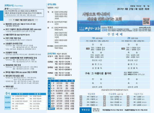 2017년 8월 27일 주보 페이지 정보 작성자 관리지기 작성일17-08-26 11:18 조회14,535회 댓글0건 관련링크 목록 본문 2017년 8월 27일 주보 댓글목록 등록된 댓글이 없습니다. 목록