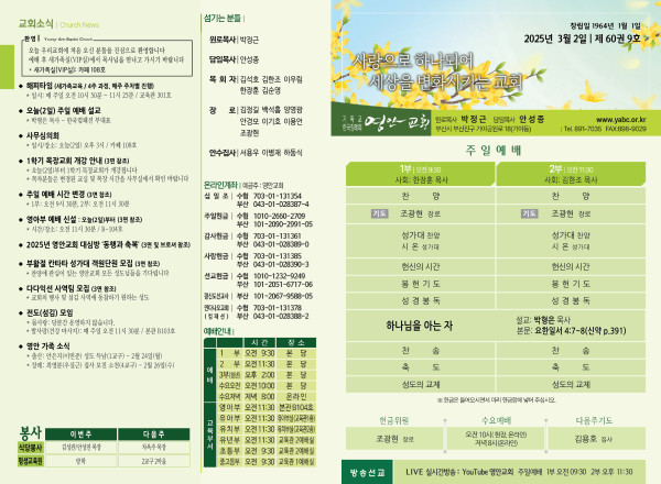 2025년 3월 2일 주보 페이지 정보 작성자 관리지기 작성일25-02-28 15:31 조회2,714회 댓글0건 관련링크 목록 본문 2025년 3월 2일 주보 댓글목록 등록된 댓글이 없습니다. 목록