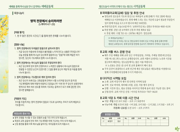 2025년 3월 16일 주보 페이지 정보 작성자 관리지기 작성일25-03-15 10:57 조회2,372회 댓글0건 관련링크 목록 본문 2025년 3월 16일 주보 댓글목록 등록된 댓글이 없습니다. 목록