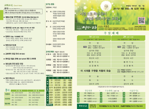 2017년 4월 30일 주보 페이지 정보 작성자 관리지기 작성일17-04-29 12:28 조회14,712회 댓글0건 관련링크 목록 본문 2017년 4월 30일 주보 댓글목록 등록된 댓글이 없습니다. 목록