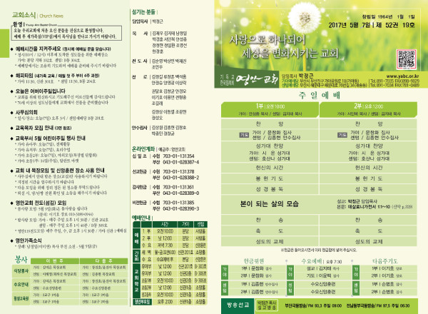 2017년 5월 7일 주보 페이지 정보 작성자 관리지기 작성일17-05-06 11:53 조회14,718회 댓글0건 관련링크 목록 본문 2017년 5월 7일 주보 댓글목록 등록된 댓글이 없습니다. 목록