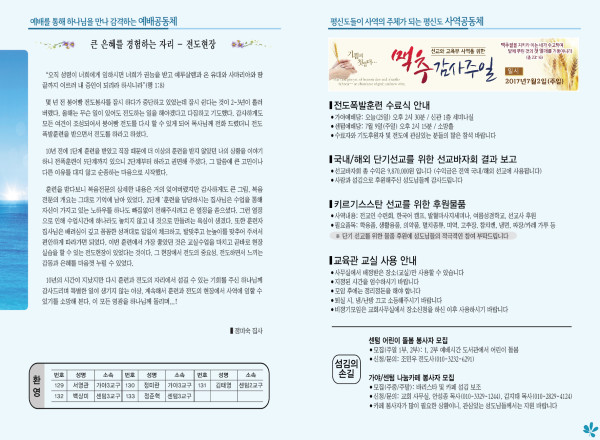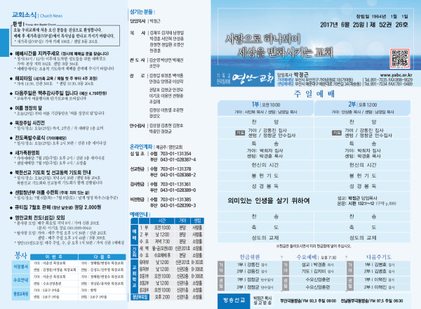 2017년 6월 25일 주보 페이지 정보 작성자 관리지기 작성일17-06-24 11:36 조회14,530회 댓글0건 관련링크 목록 본문 2017년 6월 25일 주보 댓글목록 등록된 댓글이 없습니다. 목록