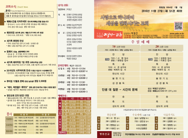 2016년 11월 27일 주보 페이지 정보 작성자 관리지기 작성일16-11-26 12:52 조회15,337회 댓글0건 관련링크 목록 본문 2016년 11월 27일 주보 댓글목록 등록된 댓글이 없습니다. 목록