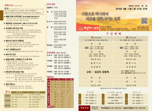 2016년 9월 11일 주보 페이지 정보 작성자 관리지기 작성일16-09-10 12:21 조회14,104회 댓글0건 관련링크 목록 본문 [2016년 9월 11일 주보] 댓글목록 등록된 댓글이 없습니다. 목록