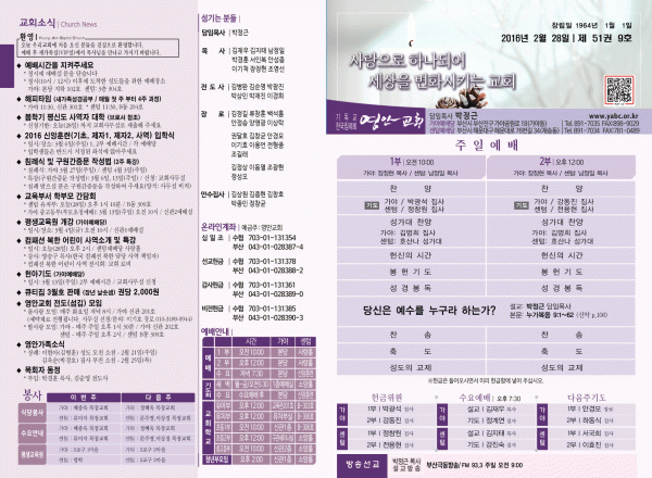 2016년 2월 28일 주보 페이지 정보 작성자 영안교회 작성일16-02-26 16:56 조회12,840회 댓글0건 관련링크 목록 본문 2016년 2월 28일 주보 댓글목록 등록된 댓글이 없습니다. 목록