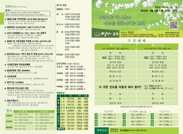 2016년 3월 6일 주보 페이지 정보 작성자 관리지기 작성일16-03-05 13:23 조회13,125회 댓글0건 관련링크 목록 본문 2016년 3월 6일 주보 댓글목록 등록된 댓글이 없습니다. 목록