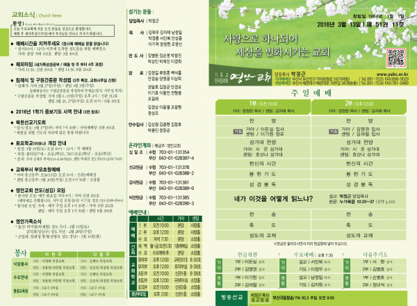 2016년 3월 13일 주보 페이지 정보 작성자 관리지기 작성일16-03-12 12:25 조회14,955회 댓글0건 관련링크 목록 본문 [2016년 3월 13일 주보] 댓글목록 등록된 댓글이 없습니다. 목록