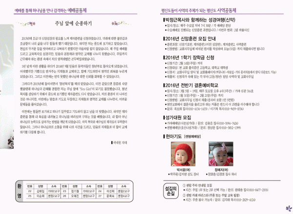 2016년 1월 31일 주보 페이지 정보 작성자 영안교회 작성일16-01-30 12:33 조회12,821회 댓글0건 관련링크 목록 본문 2016년 1월 31일 주보 댓글목록 등록된 댓글이 없습니다. 목록