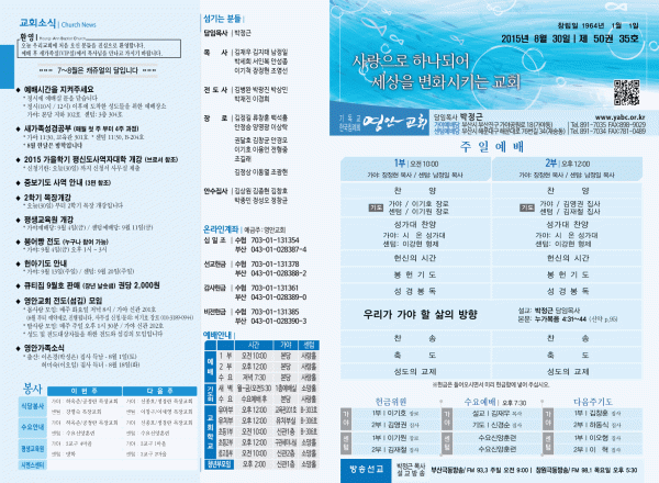 2015년 8월 30일 주보 페이지 정보 작성자 영안교회 작성일15-09-19 14:25 조회10,737회 댓글0건 관련링크 목록 본문 2015년 8월 30일 주보 댓글목록 등록된 댓글이 없습니다. 목록