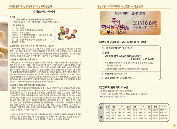 2015년 9월 27일 주보 페이지 정보 작성자 영안교회 작성일15-09-25 14:21 조회12,103회 댓글0건 관련링크 목록 본문 2015년 9월 27일 주보 댓글목록 등록된 댓글이 없습니다. 목록