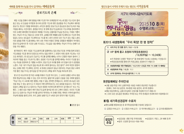 2015년 10월 4일 주보 페이지 정보 작성자 영안교회 작성일15-10-02 14:31 조회12,301회 댓글0건 관련링크 목록 본문 2015년 10월 4일 주보 댓글목록 등록된 댓글이 없습니다. 목록