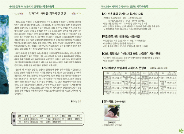 2015년 4월 19일 주보 페이지 정보 작성자 yabc 작성일15-04-18 00:00 조회10,439회 댓글0건 관련링크 목록 본문 2015년 4월 19일 주보 댓글목록 등록된 댓글이 없습니다. 목록