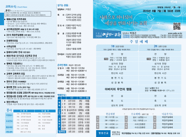 2015년 6월 7일 주보 페이지 정보 작성자 yabc 작성일15-06-05 00:00 조회11,161회 댓글0건 관련링크 목록 본문 2015년 6월 7일 주보 댓글목록 등록된 댓글이 없습니다. 목록