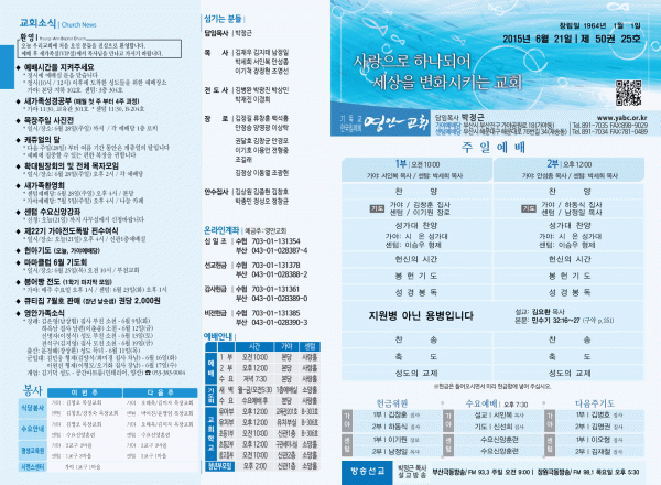 2015년 6월 21일 주보 페이지 정보 작성자 yabc 작성일15-06-20 00:00 조회10,625회 댓글0건 관련링크 목록 본문 2015년 6월 21일 주보 댓글목록 등록된 댓글이 없습니다. 목록