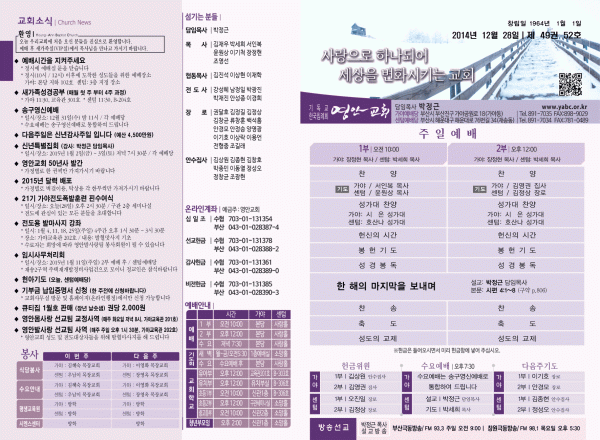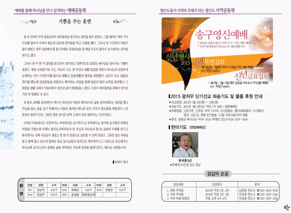 2014년 12월 28일 주보 페이지 정보 작성자 yabc 작성일14-12-27 00:00 조회11,386회 댓글0건 관련링크 목록 본문 2014년 12월 28일 주보 댓글목록 등록된 댓글이 없습니다. 목록