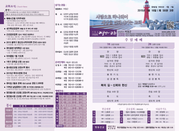 2015년 1월 18일 주보 페이지 정보 작성자 yabc 작성일15-01-17 00:00 조회11,223회 댓글0건 관련링크 목록 본문 2015년 1월 18일 주보 댓글목록 등록된 댓글이 없습니다. 목록
