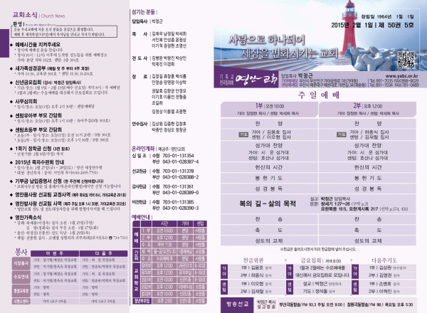 2015년 2월 1일 주보 페이지 정보 작성자 yabc 작성일15-01-31 00:00 조회10,408회 댓글0건 관련링크 목록 본문 2015년 2월 1일 주보 댓글목록 등록된 댓글이 없습니다. 목록