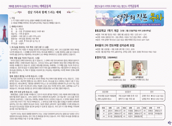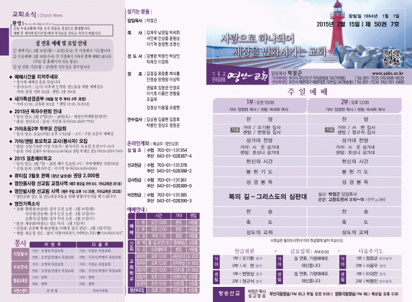2015년 2월 15일 주보 페이지 정보 작성자 yabc 작성일15-02-14 00:00 조회10,593회 댓글0건 관련링크 목록 본문 2015년 2월 15일 주보 댓글목록 등록된 댓글이 없습니다. 목록