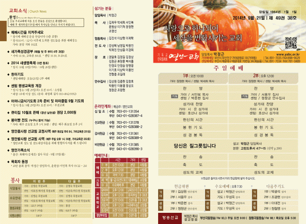2014년 9월 21일 주보 페이지 정보 작성자 yabc 작성일14-09-20 00:00 조회12,036회 댓글0건 관련링크 목록 본문 2014년 9월 21일 주보 댓글목록 등록된 댓글이 없습니다. 목록